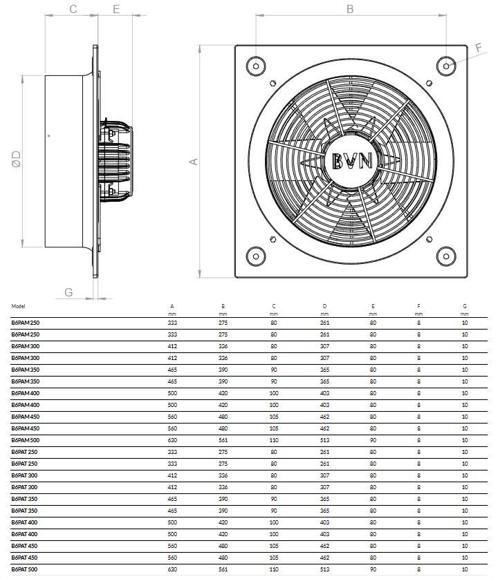 | B6PAM 450 | 560 | 480 | 105 | 462 | 80 | 8 | 10 |