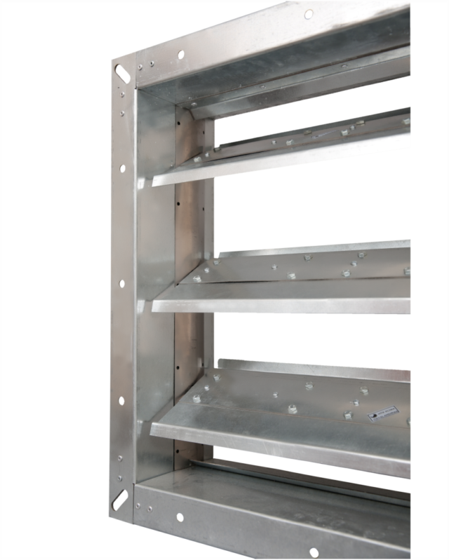 Kasa ve kanatlar galvaniz sacdır. Kasa, kalınlığı 1,20 mm galvaniz sacdan imal edilir. Kanat yatakları bronz malzemeden imal edilmiş olup, kanat mekanizma malzemesi çeliktendir.