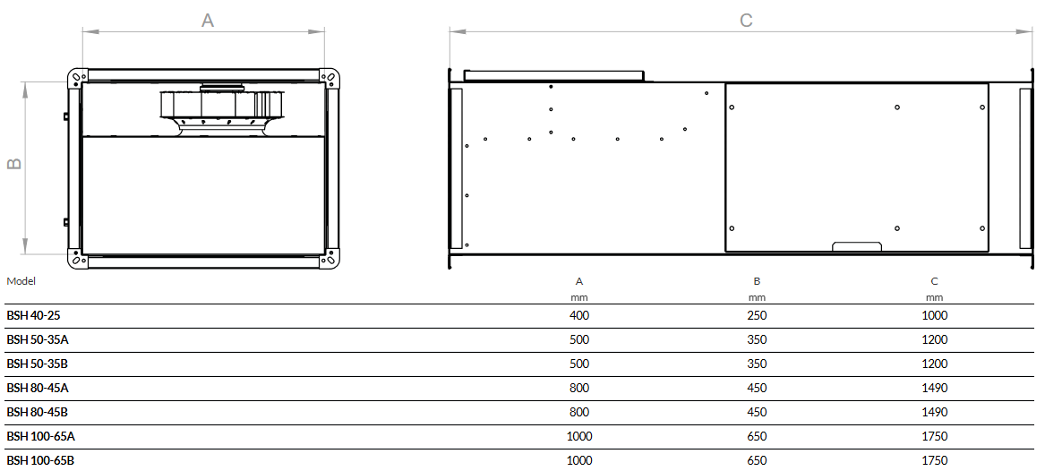 | BSH 100-65A | 1000 | 650 | 1750 |