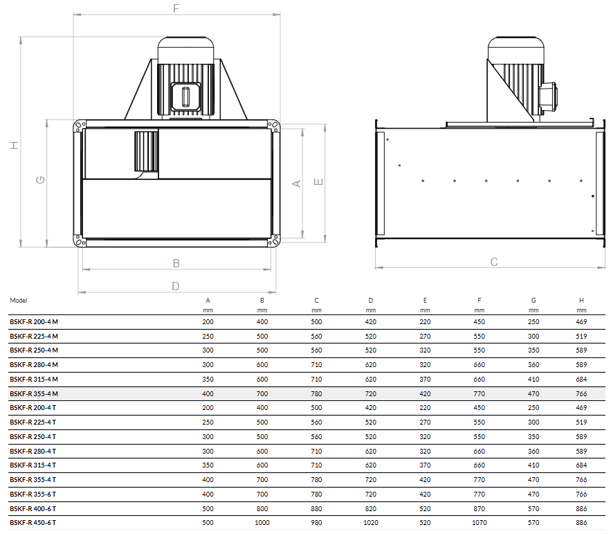 | BSKF-R 355-4 T | 400 | 700 | 780 | 720 | 420 | 770 | 470 | 766 |