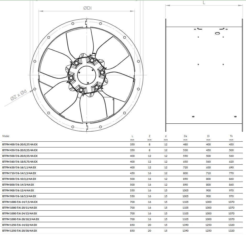 | BTFM 1250-T/6-14/22/4A EX | 850 | 20 | 15 | 1390 | 1250 | 1320 |