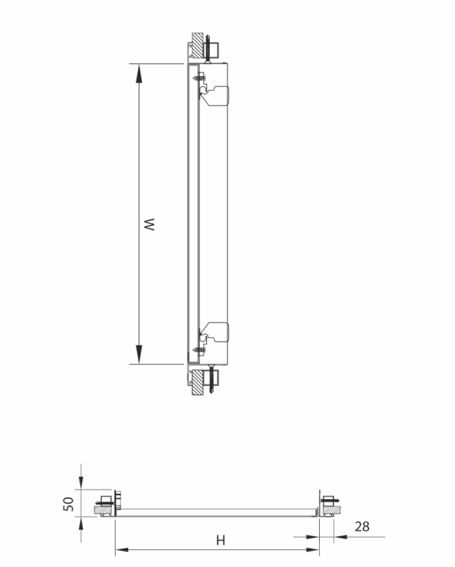 HKK-B tipinde ürün dış çerçevesi alüminyum profilden, çerçeve içinde kullanılan kapak ise galvanizli sacdan imal edilmektedir. Kapağın iç kısmında taş yünü izolasyon bulunmaktadır.