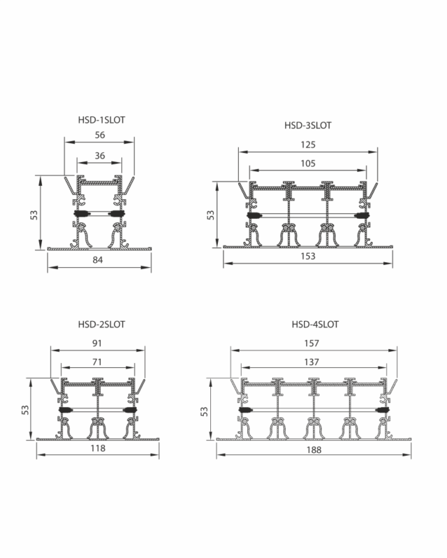 * HSD-S : Dağıtıcı tip slot difüzör, damper ve yönlendirici kanatlı