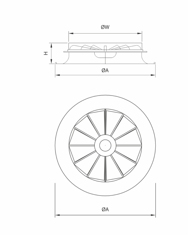 HTD Serisi Türbülanslı difüzörler sabit kanatlı yada yaz kış konum ayarı yapabilmek için hareketli olarak imal edilir. 3,5 mt ve üzeri yüksekliğe sahip mekanlarda şartlandırılmış havanın türbülans (Swrill) etkisiyle optimum olarak dağılımını sağlamak için kullanılır.