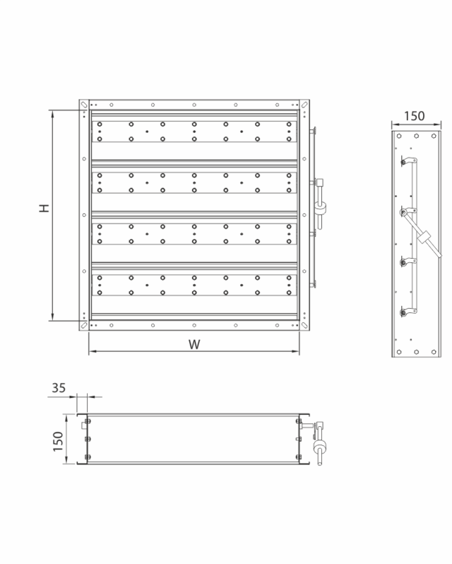 Kasa ve kanatlar galvaniz sacdır. Kasa, kalınlığı 1,20 mm galvaniz sacdan imal edilir. Kanat yatakları bronz malzemeden imal edilmiş olup, kanat mekanizma malzemesi çeliktendir.