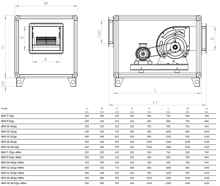 | BHV 18-18/{p} >60Hz | 560 | 480 | 955 | 460 | 1040 | 1380 | 1040 | 1420 |