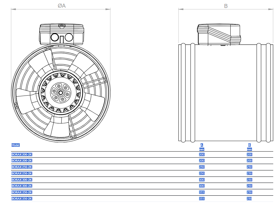 BORAX aksiyel kanal fanları yaşamsal ve endüstriyel alanlarda havalandırma, yer sınırlamasına karşın yüksek hava debilerine ihtiyaç duyulan uygulamalar için idealdirler. Makine imalatçıları tarafından da hava sirkülasyonu amaçlı kullanılır.