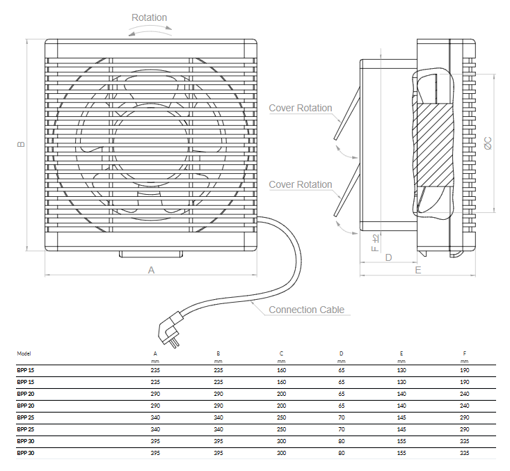 | BPP 25 | 340 | 340 | 250 | 70 | 145 | 290 |