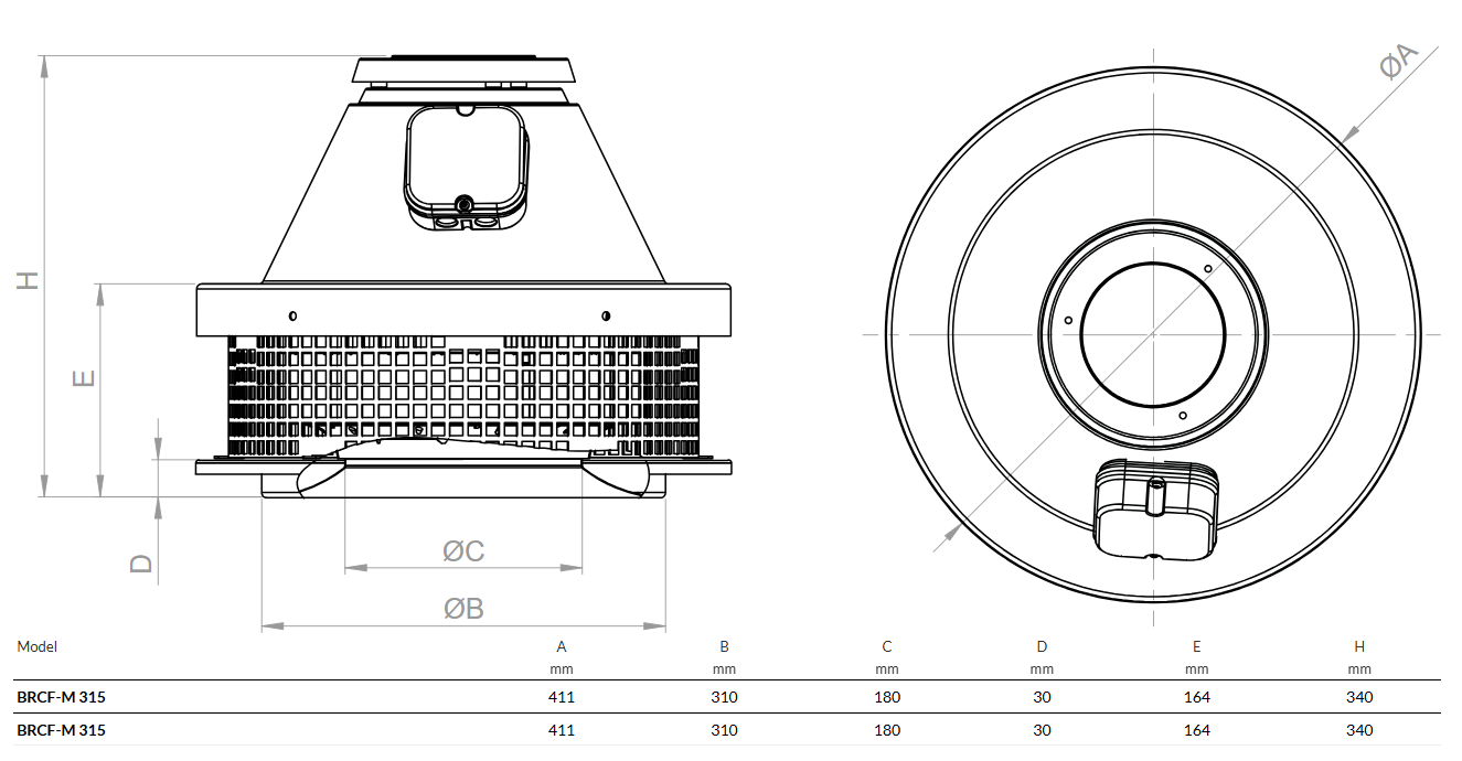 | BRCF-M 315 | 411 | 310 | 180 | 30 | 164 | 340 |