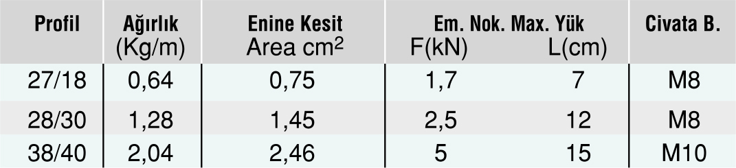 | C Profil Delikli | 1,5 – 2,0 | 2000 mm | Montaj bağlantı |