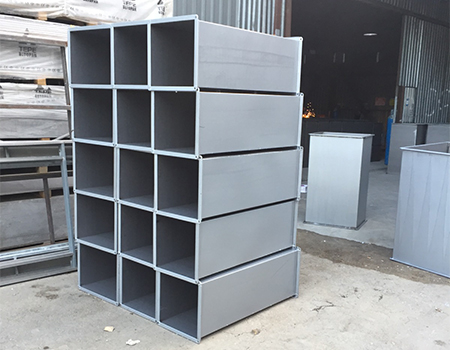 Kanal uçlarına köşebent çerçeveler kaynaklanır. Bu çerçevelerdeki delikler aracılığıyla kanallar, civatalarla kolayca birleştirilebilir.